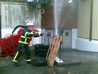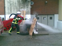 spruta in vatten i brinnande utrymmen. Vattnet sprutas ut genom munstycket